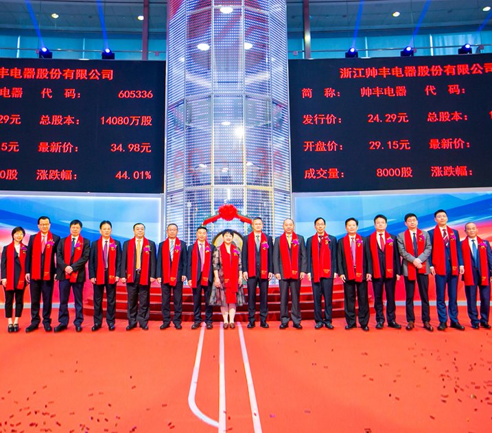 2020年10月 主板上市,A股發(fā)行2020年10月19日,帥豐電器在上海證券交易所鳴鑼上市,股票代碼605336.SH
